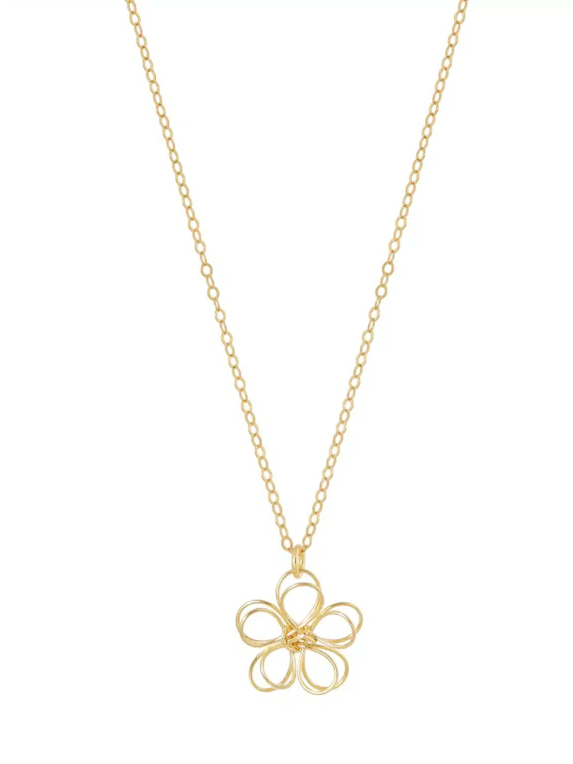 Fijn kettinkje verguld met een minimalistisch bloemetje. lengte van de ketting is 18 inch. Het model op de foto draagt 18 inch.