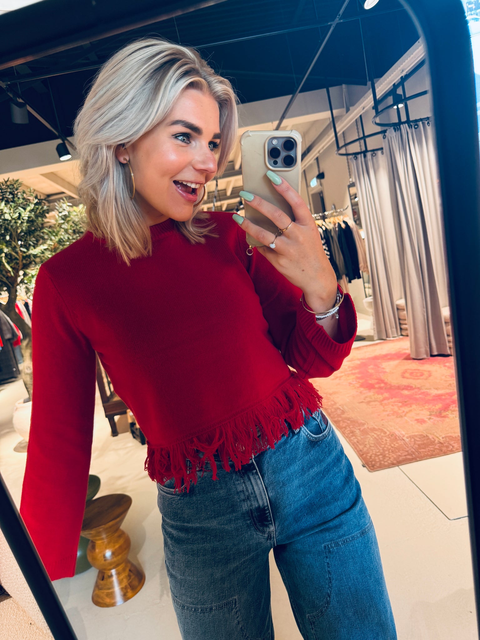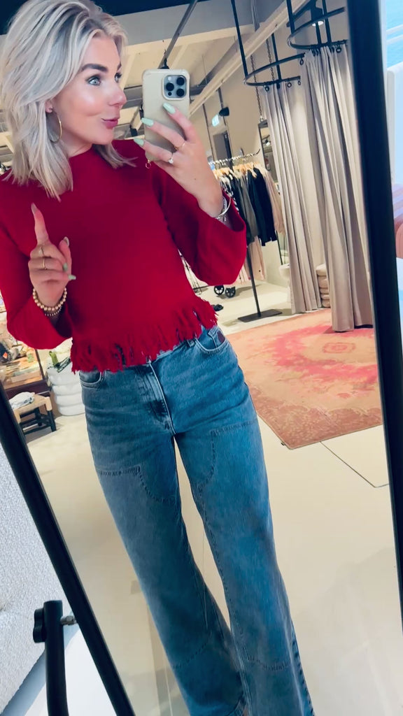 De Chevy Sweater geeft je garderobe een boho-chique uitstraling met een stoere franje aan de zoom. Deze comfortabele trui is gemaakt van de zachtste merinowol en heeft een relaxte pasvorm met een ronde hals en geribde kraag en manchetten. Makkelijk te combineren met je favoriete jeans of broek.