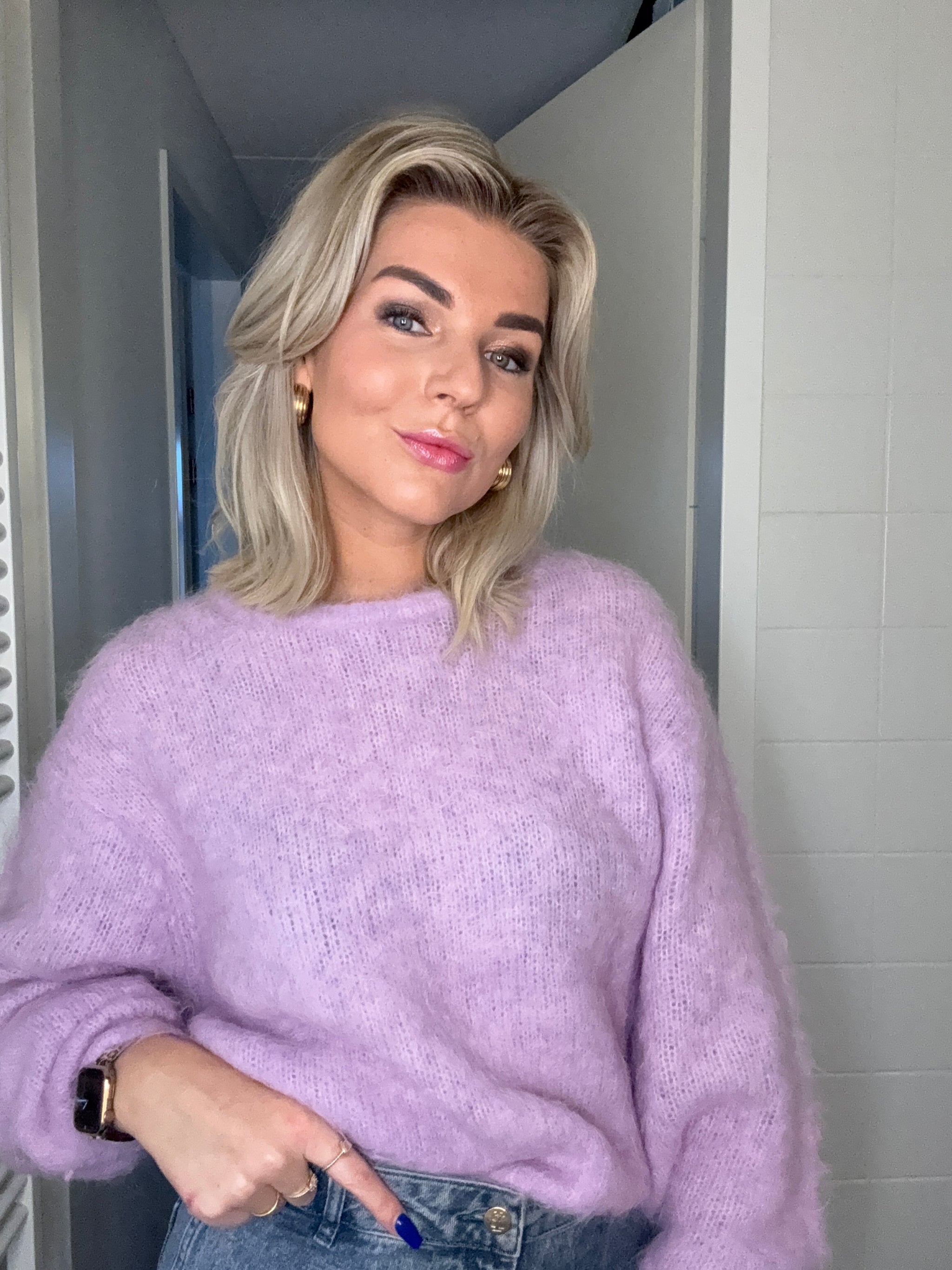 Rixt draagt maat S en is 1.77 cm