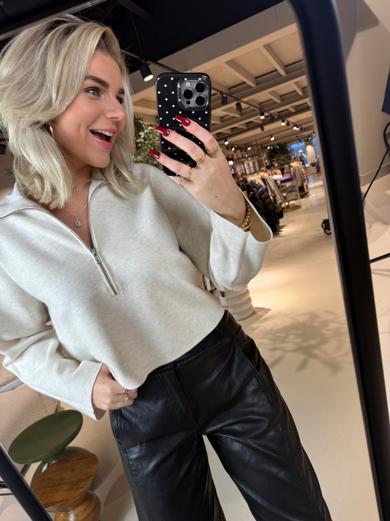 Deze zachte trui heeft een relaxte, iets kortere pasvorm met een moderne halve ritssluiting aan de hals. Hij is gemaakt van een comfortabele stof en is een makkelijk te combineren kledingstuk dat casual gemak combineert met een eigentijds silhouet.