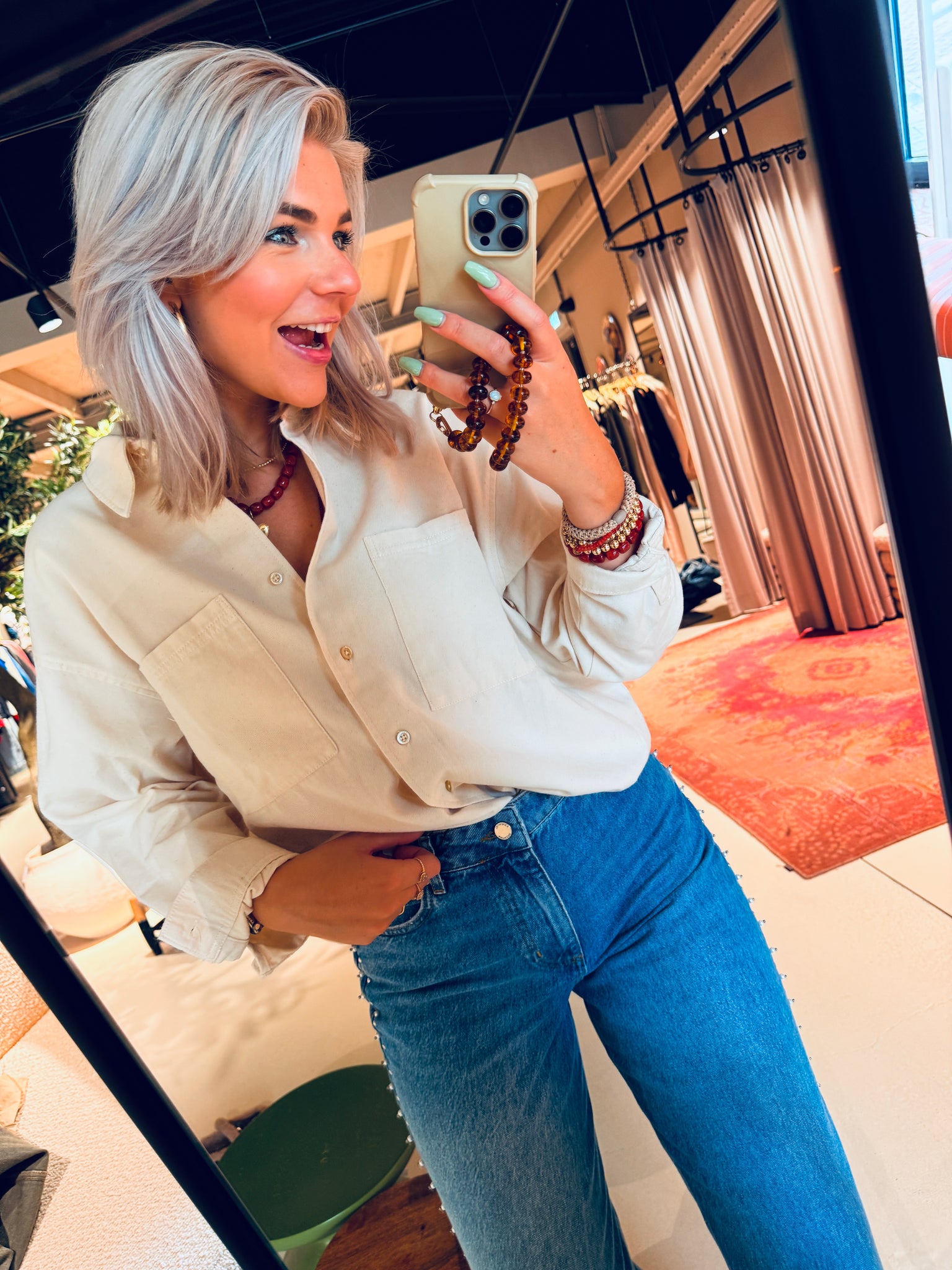 Rixt draagt maat XS/S en is 1.77cm.