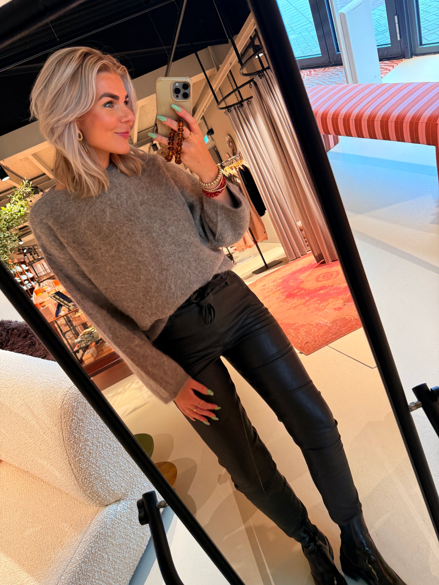 Rixt draagt maat S en is 1.77cm