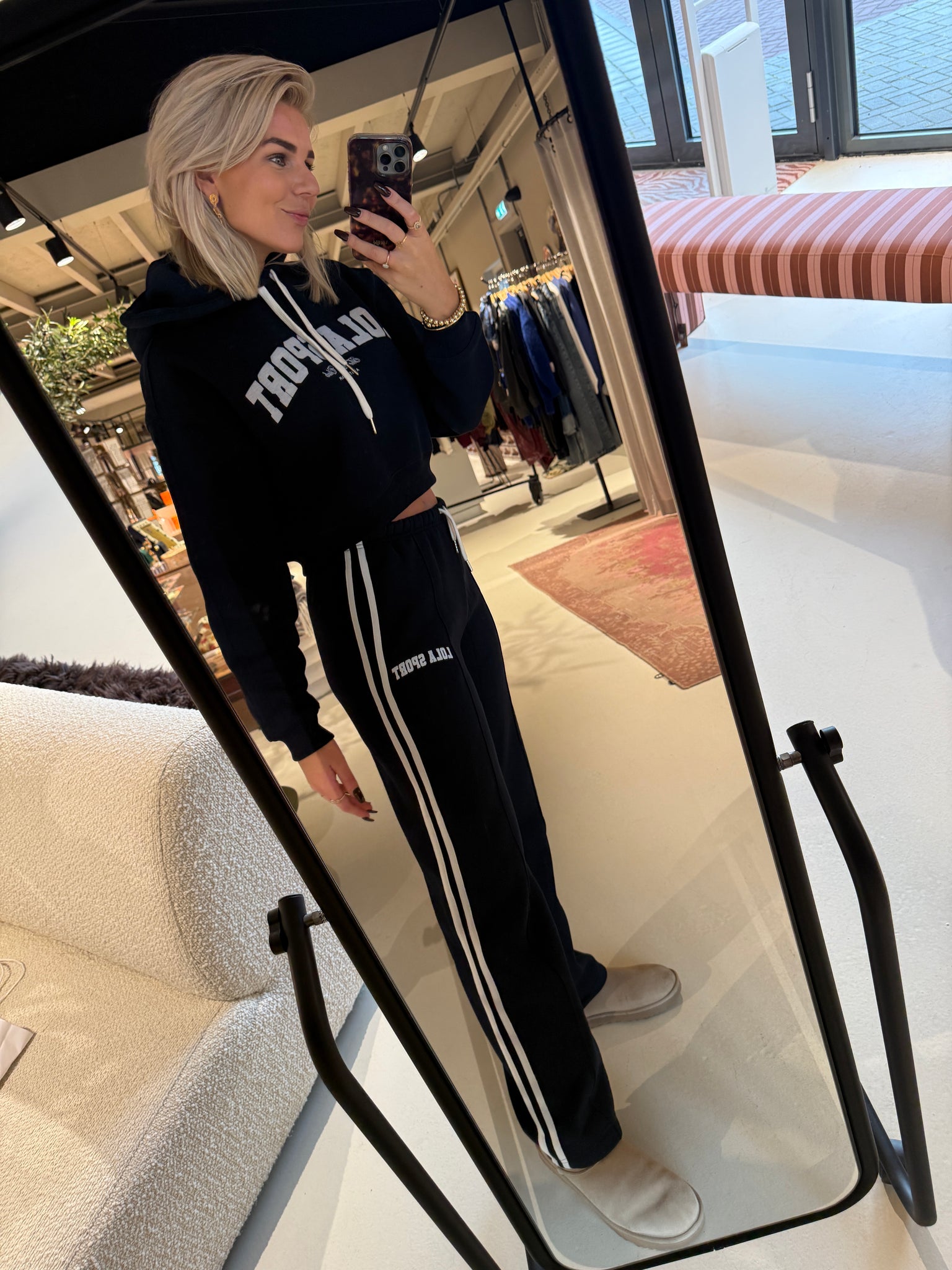 Stap in moeiteloos comfort met de Jade-broek. Deze broek is perfect om in te loungen of voor casual uitstapjes. Hij heeft een wijde pijp en is gemaakt van ultrazachte stof voor een hele dag comfort. De contrasterende witte strepen aan de zijkant geven de broek een sportieve en moderne uitstraling, terwijl het opvallende logo een trendy touch toevoegt, waardoor deze broek meer is dan alleen loungewear. Combineer de broek met de bijpassende Jade-trui of -hoodie voor een complete, gecoördineerde look, of draag hem met je favoriete alledaagse kledingstukken. Met zijn combinatie van comfort en stijl is de Jade-broek een onmisbare aanvulling op je garderobe.