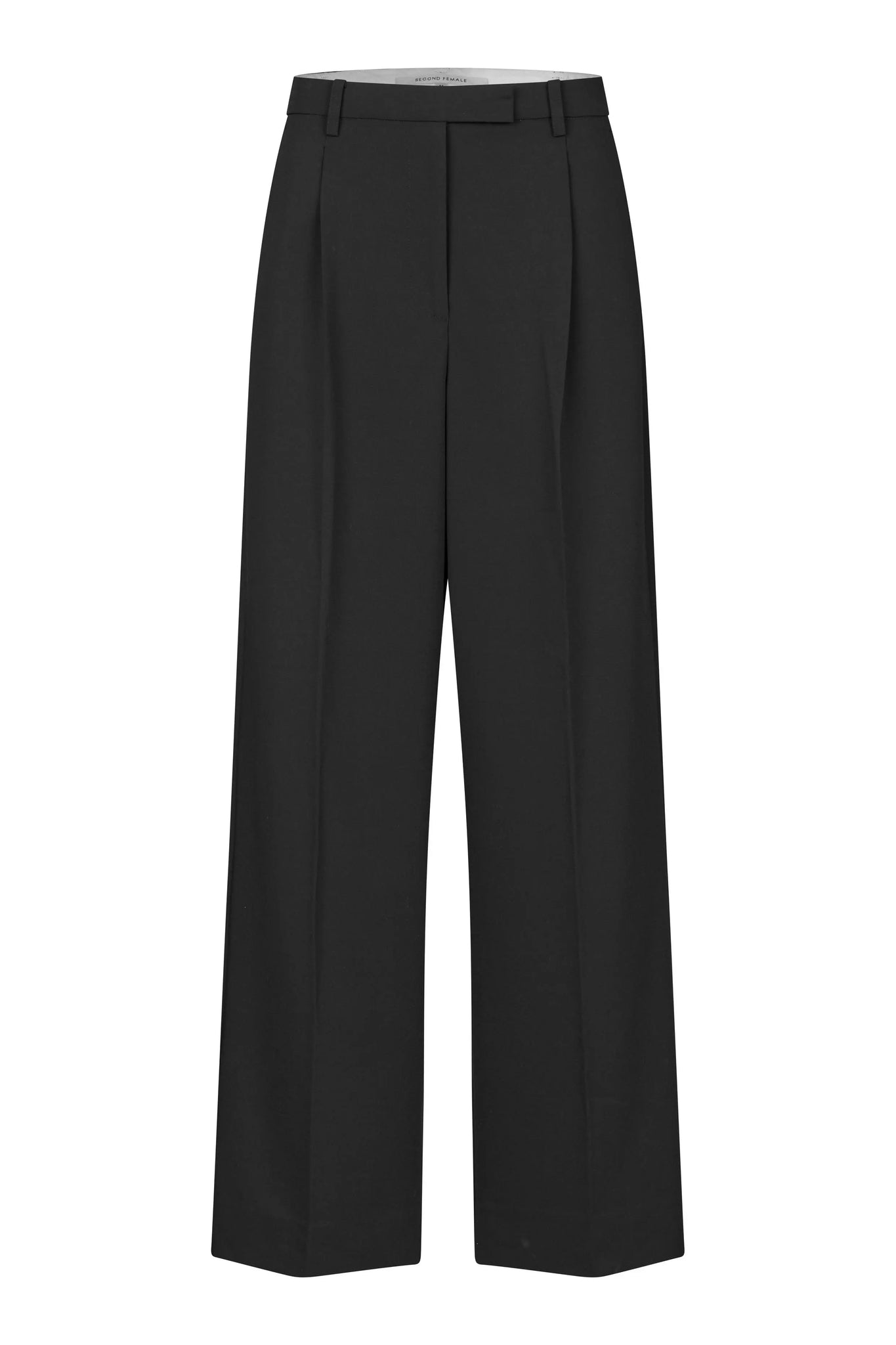 Second Female broek met wijde pijpen. Met verborgen ritssluiting, haak- en knoopsluiting. Twee zakken aan de voorkant en twee decoratieve zakken aan de achterkant. Plooien in de tailleband. Middelhoge taille met losse pasvorm en wijde pijpen.