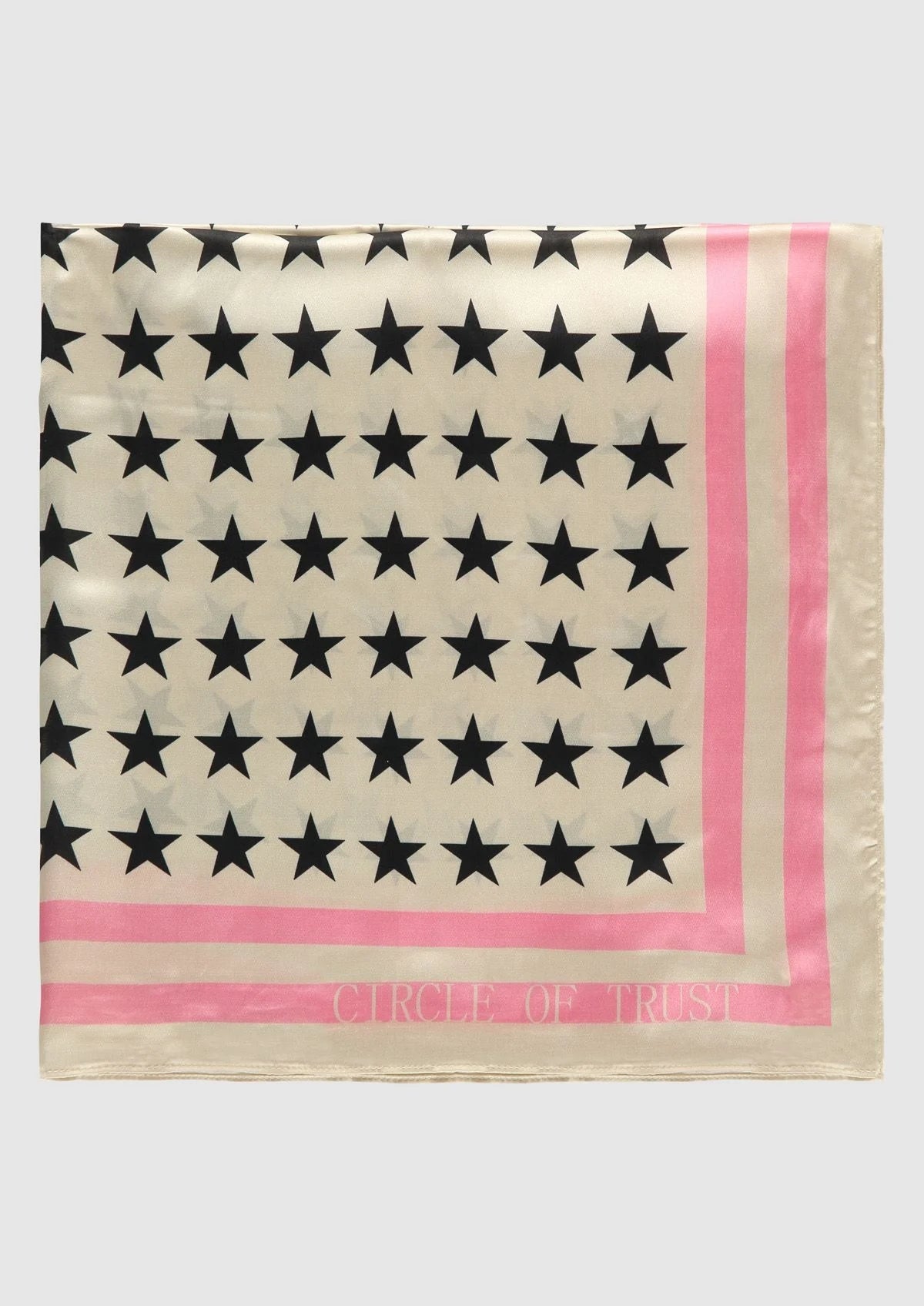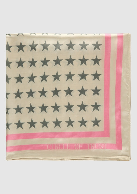 Vierkant hals sjaaltje van geweven kwaliteit met een sterrenprint. De Jazz scarf is uitgevoerd in crème, groen en lichtroze. Ook beschikbaar in een andere kleur.