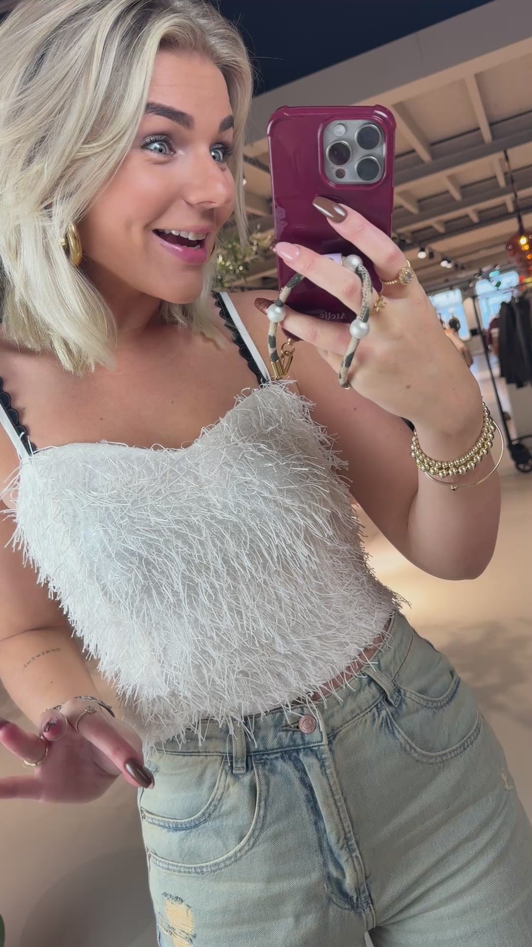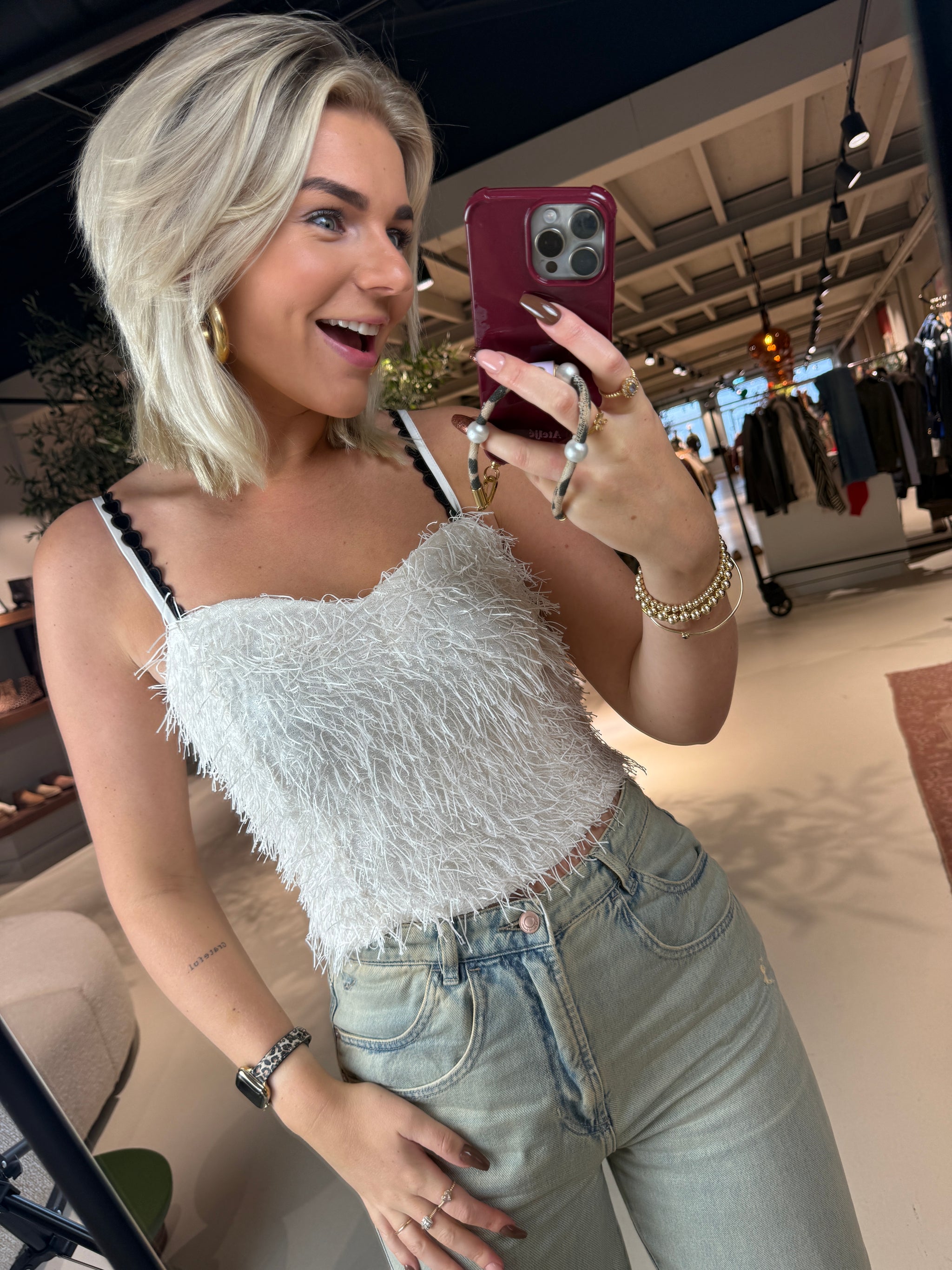 Rixt draagt maat S en is 1.77 cm