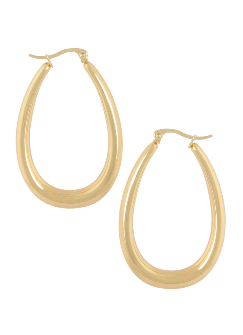 Vergulde ovale oorbellen, met een lengte van 4.5 cm en een breedte van 3.2 cm. Perfect om je look moeiteloos af te maken. Verguld op long-lasting stainless steel.
