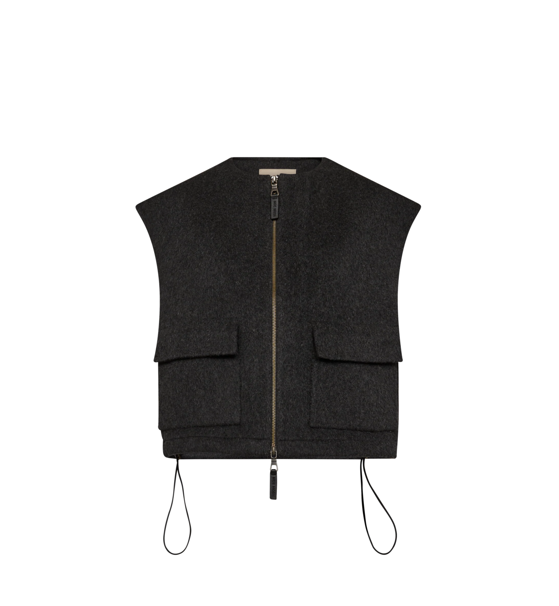 Blijf stijlvol en warm met dit chique gemêleerde wollen vest, ontworpen om moeiteloos te combineren. De ritssluiting en verstelbare trekkoorden aan de zoom zorgen voor een perfecte pasvorm en geven het vest een moderne touch. Met zijn praktische klepzakken is dit vest een veelzijdige aanvulling op elke garderobe, waarbij functionaliteit naadloos wordt gecombineerd met een eigentijdse stijl.
