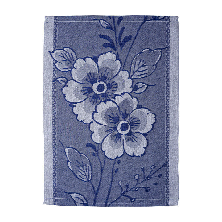 Vrolijk de keuken op met deze leuke Delfts blauwe theedoek. De theedoek is versierd met een mooi bloemenpatroon, een traditioneel element uit de Delfts blauwe schilderkunst die je vaak terugziet op vazen en wandborden. Het bloemenpatroon past thuis in een gezellige landelijke keuken, maar past ook net zo goed bij een strakke keuken. De Delfts blauwe kleur is tijdloos en je geeft je keuken er een typisch Nederlands tintje mee. Daarom is het ook een ideaal cadeautje voor iemand die in het buitenland woont. De theedoek is gemaakt van 100% katoen en is jacquard geweven. Door deze manier van weven is de stof slijtvast en is ook de achterkant mooi afgewerkt wat een luxe uitstraling geeft.