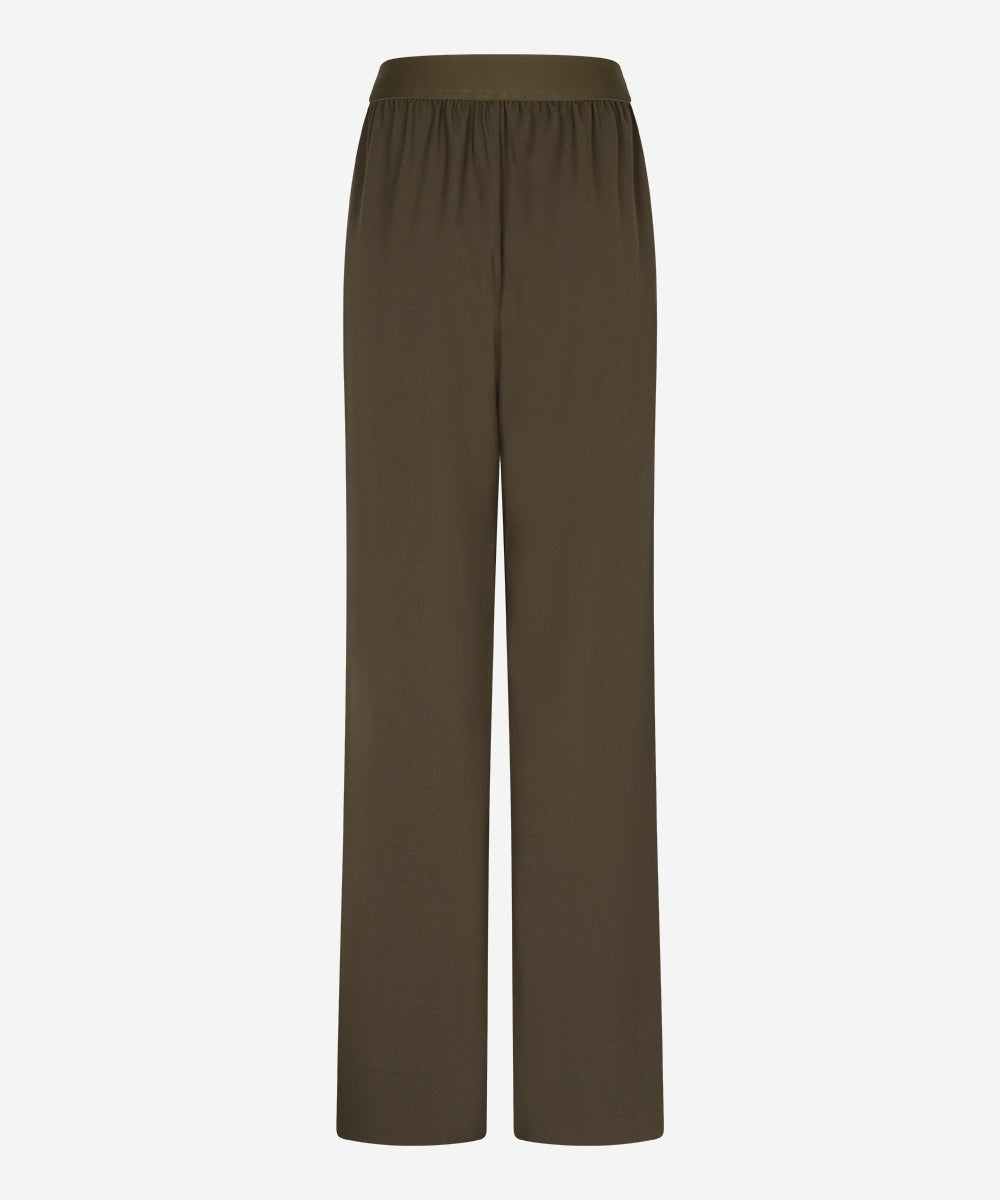 De Payge pants in Dark Elm Green heeft een vrouwelijke wijde fit en een comfortabele high waist met elastieken band. Met een binnenbeenlengte van 83 cm valt dit item elegant langs het been.