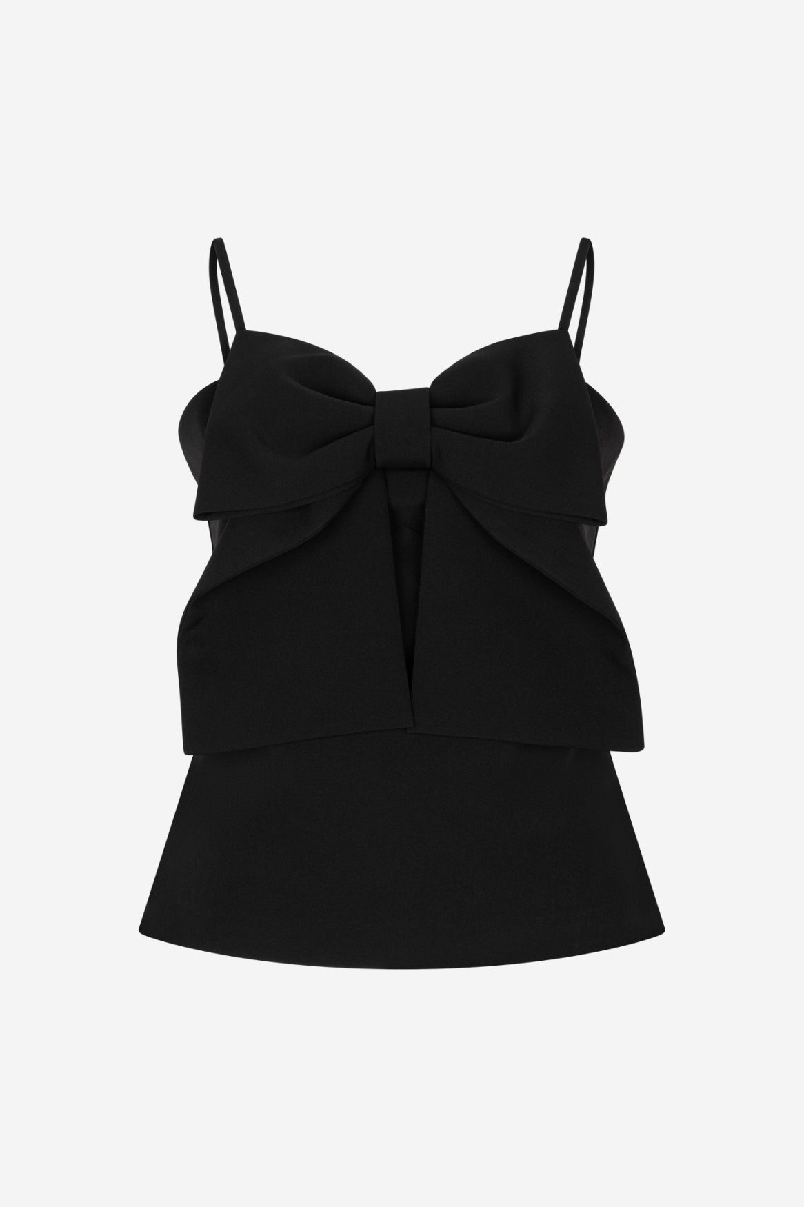 De Tezzy top in black is een feestelijke eyecatcher met hartvormige halslijn, verstelbare spaghettibandjes en een opvallende strik voorop. De rits aan de achterkant maakt aan- en uittrekken makkelijk. Get festive ready!