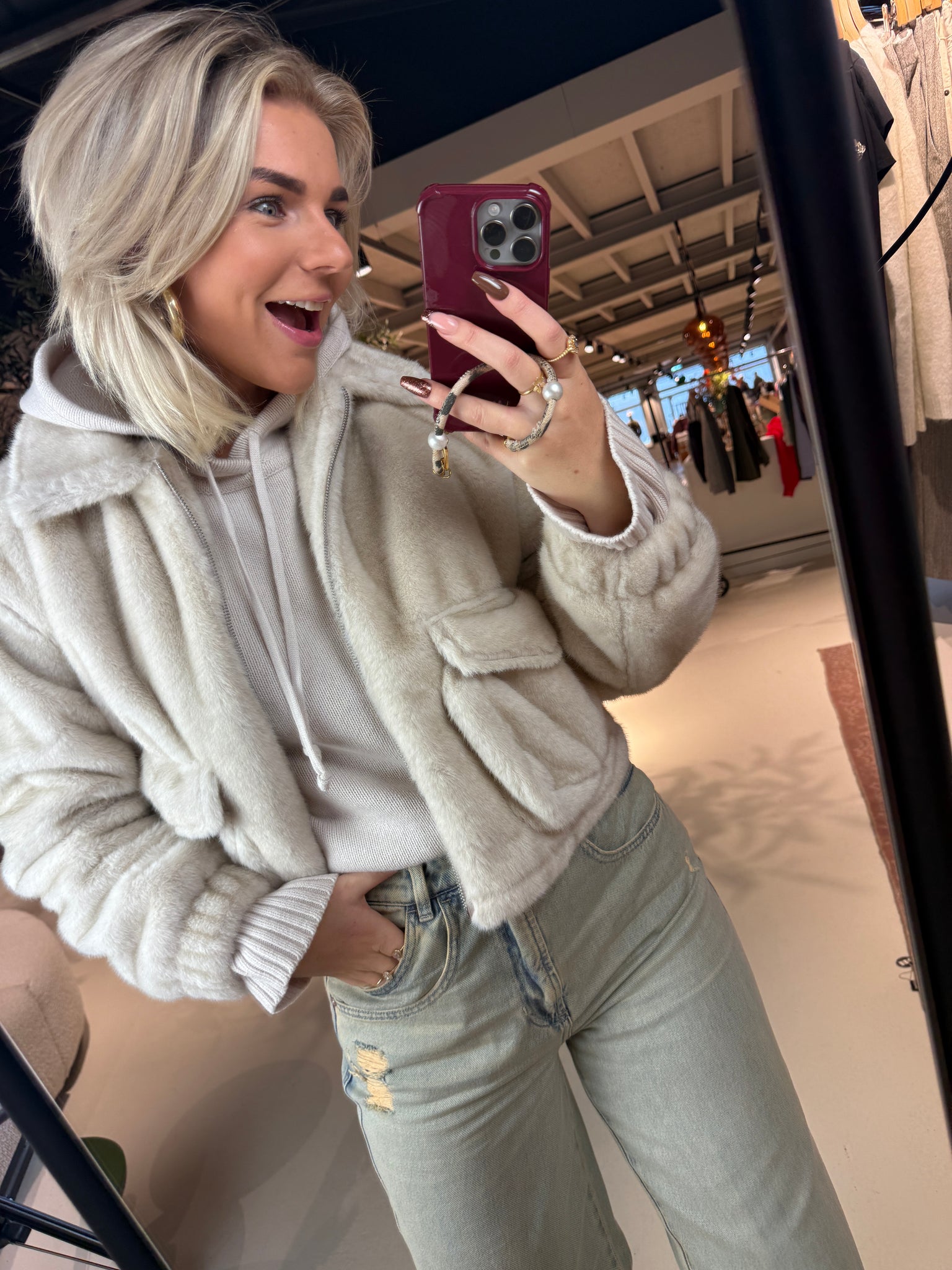 Warme bouclé damesjas uitgevoerd in een beige tint. Het Reese jack heeft een loose fit met een ritssluiting, klepzakken en een voering. In meerdere kleuren verkrijgbaar.