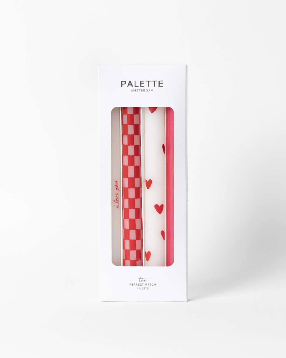 Het Perfect Match Palette is een set van vier elegante dinerkaarsen, versierd met unieke patronen in een harmonieus kleurenpalet van roze, rood en wit.