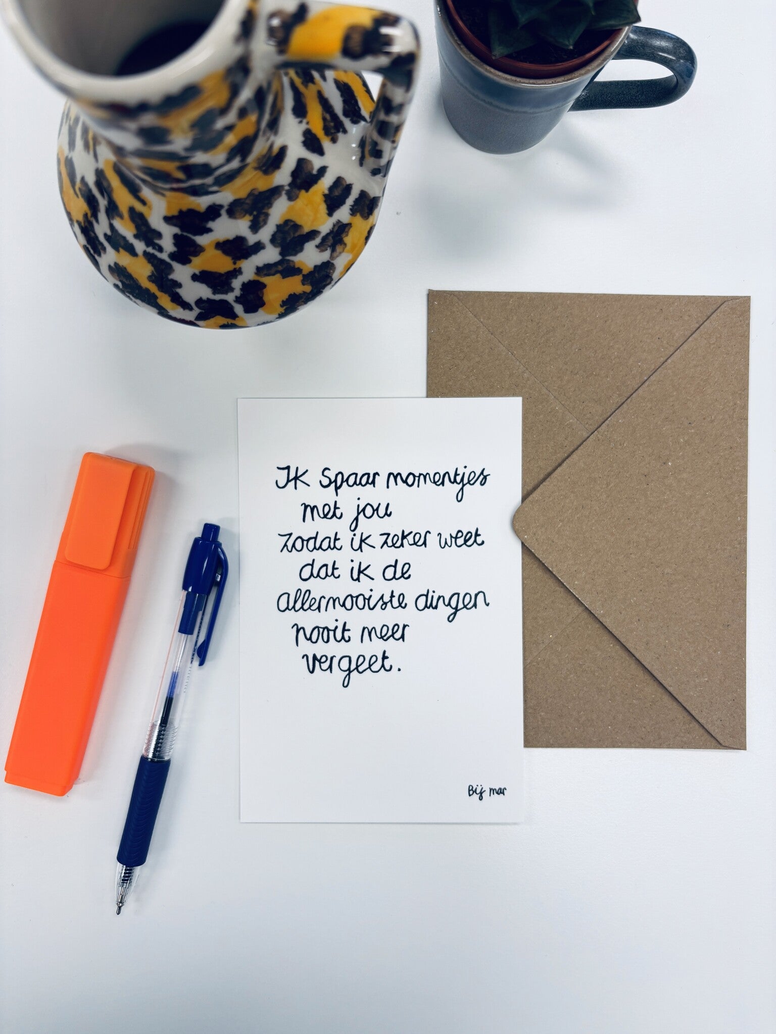 Formaat: staand formaat kaart: 105x148mm - inclusief gerecyclede craft envelop: 114x162mm.