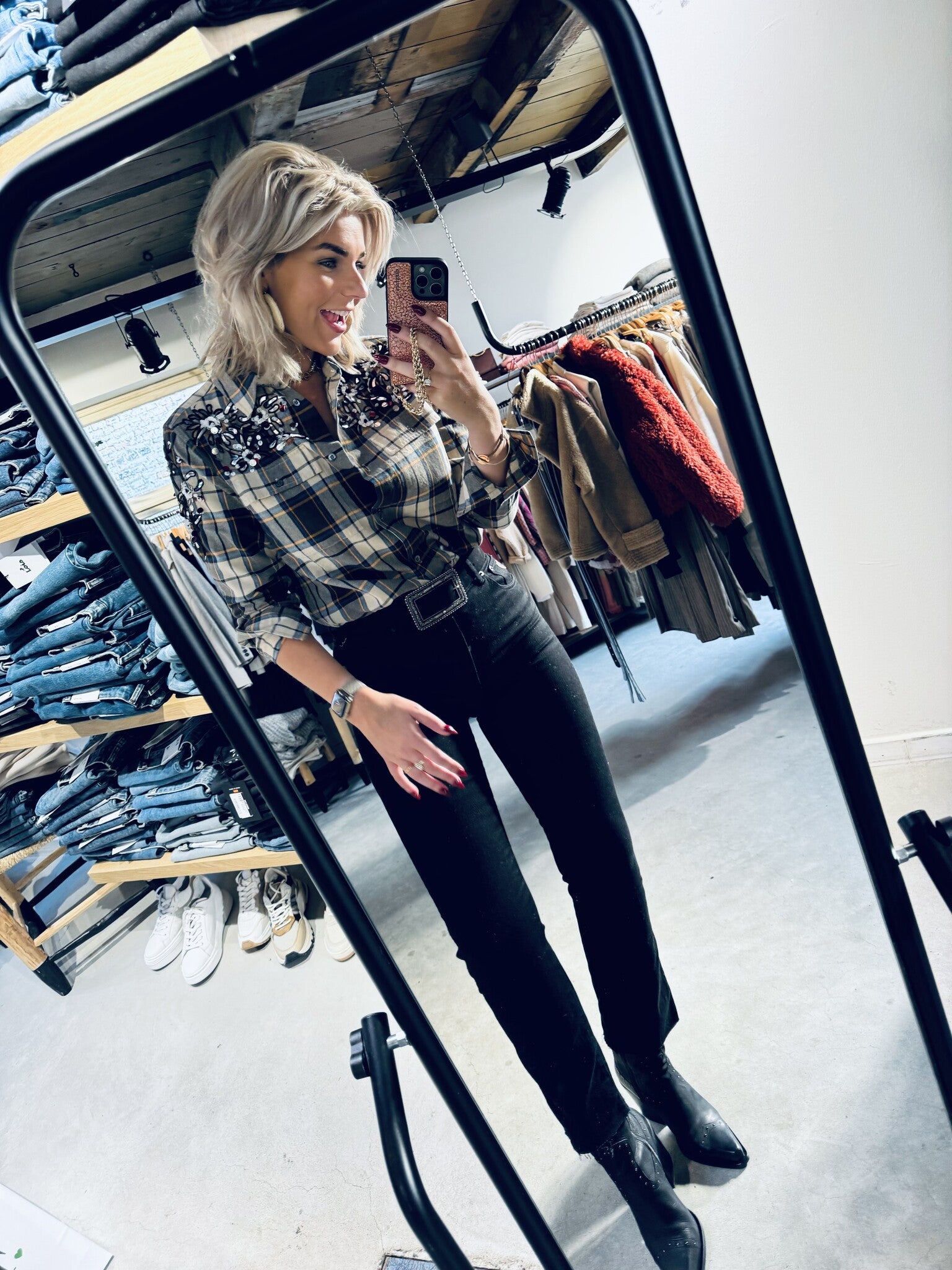 De Malena is een jeans kenmerkend aan de rechte pasvorm met hoge taille. Uitgevoerd in een perfecte donkere wassing en bijpassende zwarte knopen en garneersels.