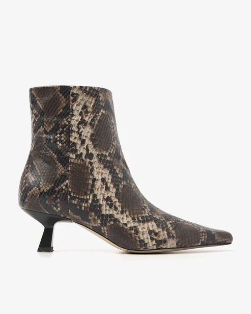 Maak kennis met Suzy Franky: een enkellaarsje dat jouw look moeiteloos naar een hoger niveau tilt. Met haar elegante kitten heel, spitse neus en stijlvolle slangenprint is dit laarsje een ware eyecatcher. De decoratieve naad aan de zijkant en de handige rits aan de binnenzijde zorgen voor een perfecte mix van stijl en comfort.