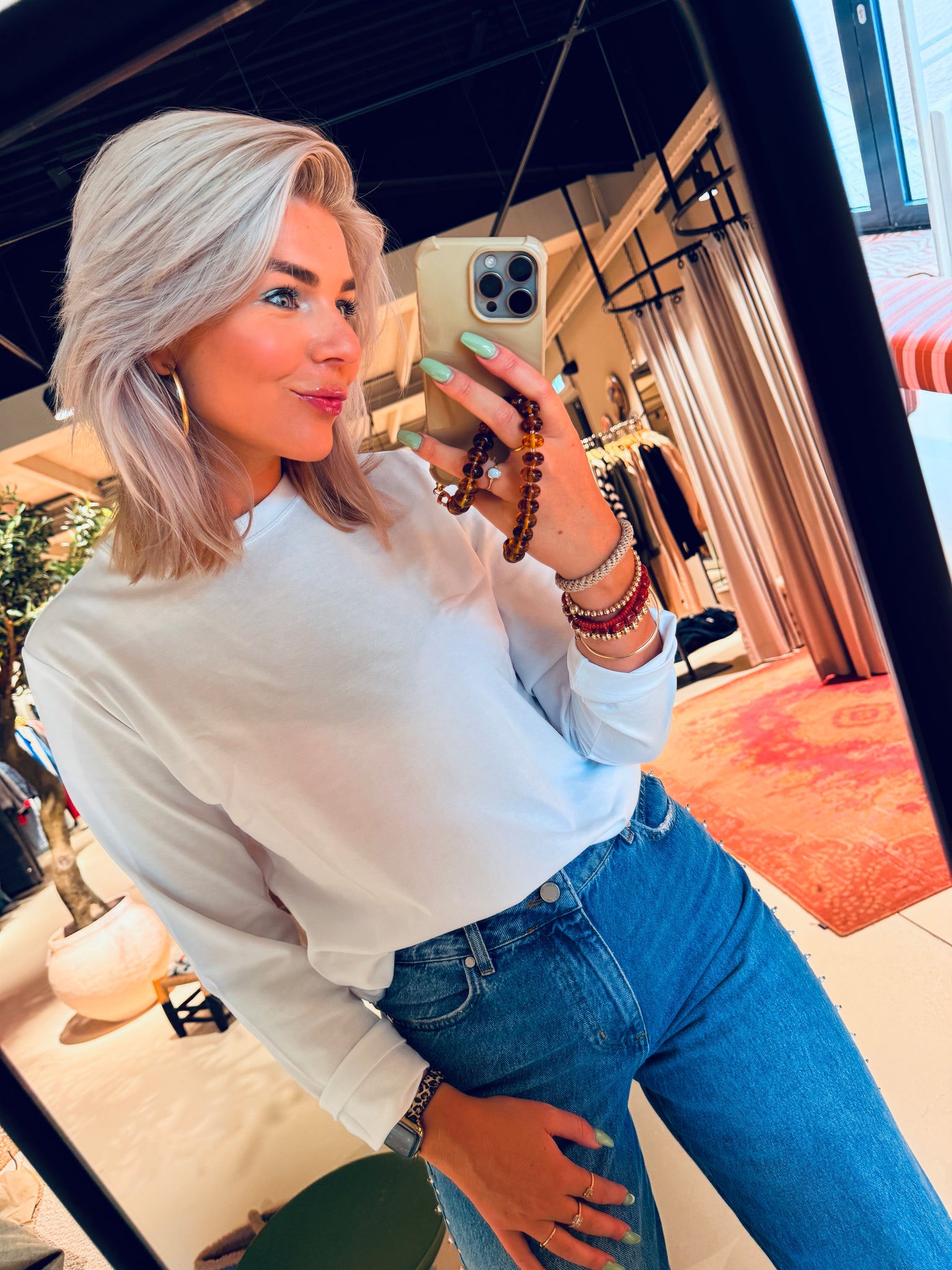 Rixt draagt maat S en is 1.77 cm