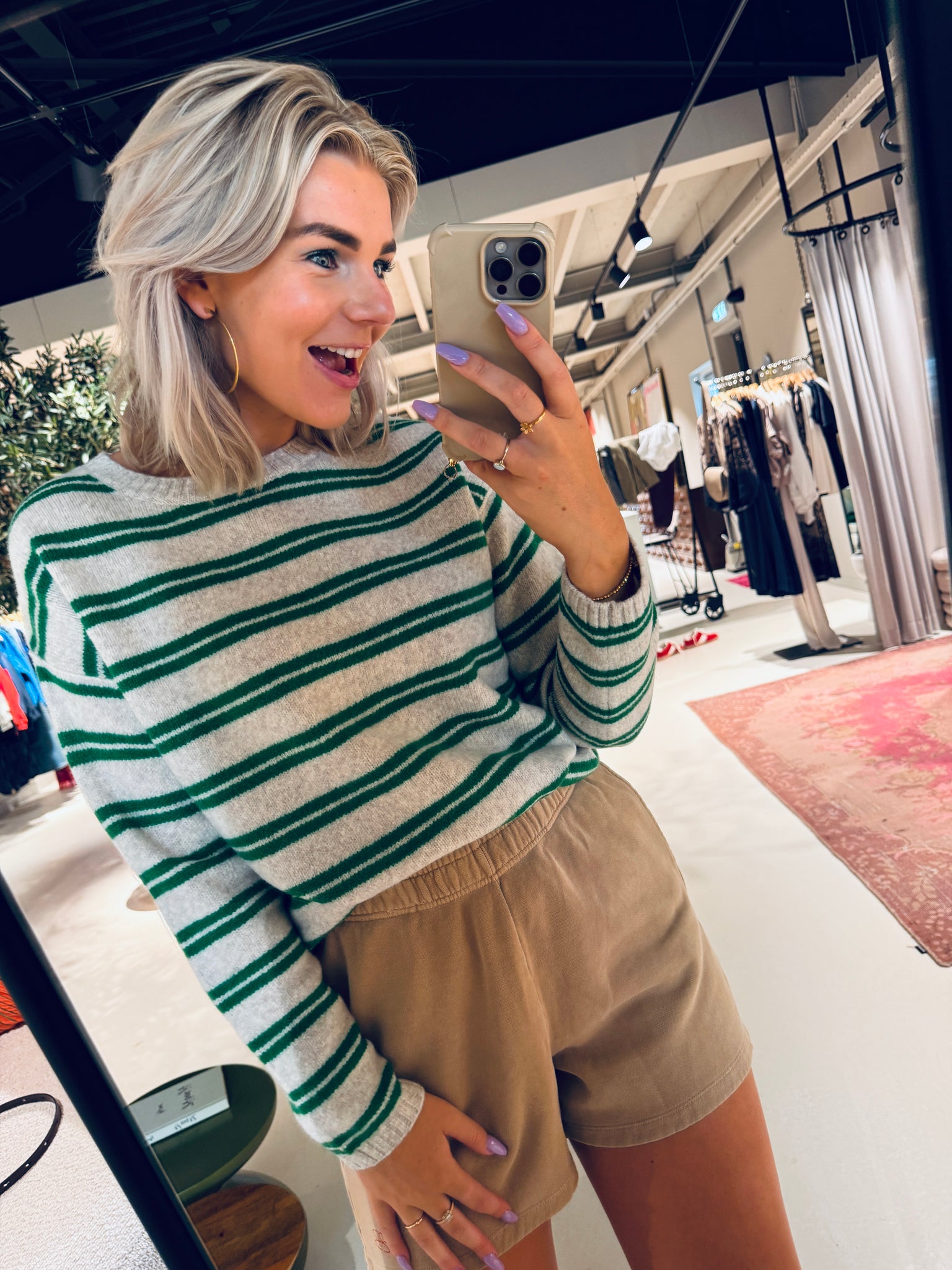 Deze modieuze trui met horizontale strepen straalt een ontspannen en eigentijdse stijl uit. Dankzij de combinatie van comfort en tijdloze klasse is dit een veelzijdig kledingstuk dat moeiteloos past bij elke gelegenheid. De zachte stof en het moderne ontwerp zorgen ervoor dat je er stijlvol uitziet én je prettig voelt, elke dag opnieuw.