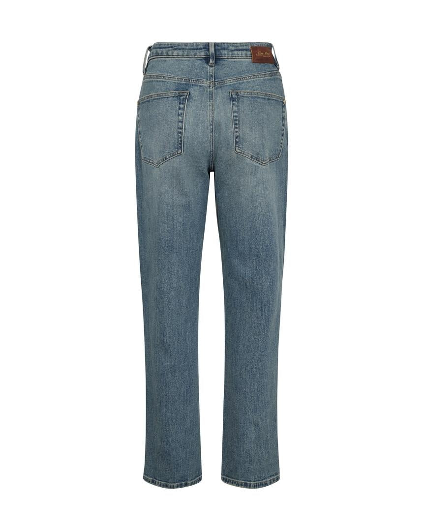 Maak kennis met deze trendy boyfriendjeans, met een rechte pasvorm en mid-rise voor een tijdloos silhouet. De jeans heeft een klassiek 5-pocketontwerp en stijlvolle, op herenmode geïnspireerde details zoals een grote omslag onderaan, een leren patch op de achterkant en een metalen logodetail op het muntzakje.
