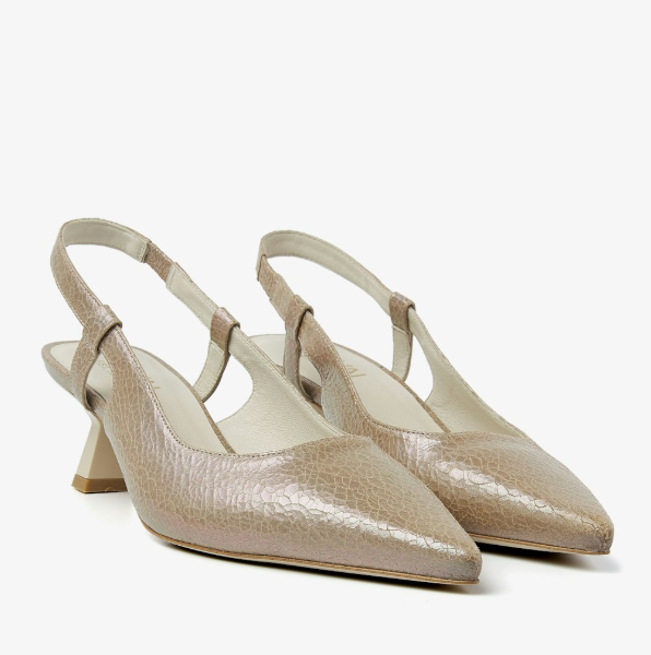 Met een pittige kitten heel en spitse neus maakt Suzy Aliya een verpletterende indruk. Het stijlvolle, vrouwelijke model maakt Suzy Aliya perfect voor iedere gelegenheid. De slingbacks zijn gemaakt van hoogwaardig leer met metallic finish en lopen heerlijk dankzij het lage hakje. Suzy Aliya is afgewerkt met een elastische band om de hiel, waardoor deze perfect aansluit. Elegant, stoer en een tikkeltje eigenwijs: Suzy Aliya heeft het allemaal.