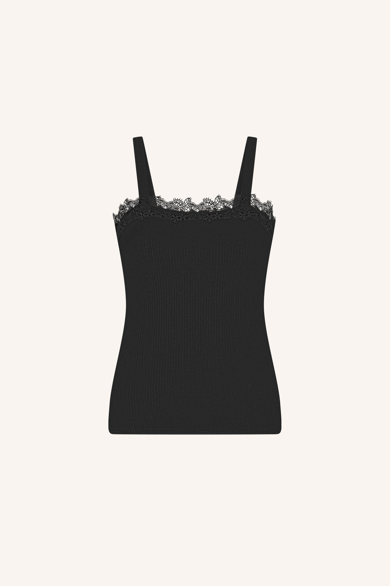 De marit lace singlet, een tijdloze klassieker met een aansluitende pasvorm die je silhouet prachtig benadrukt. Deze mouwloze top met een open rug en subtiel ribpatroon is perfect voor een casual look. De top heeft een mooie lace afwerking aan de bovenkant voor een elegante look!
