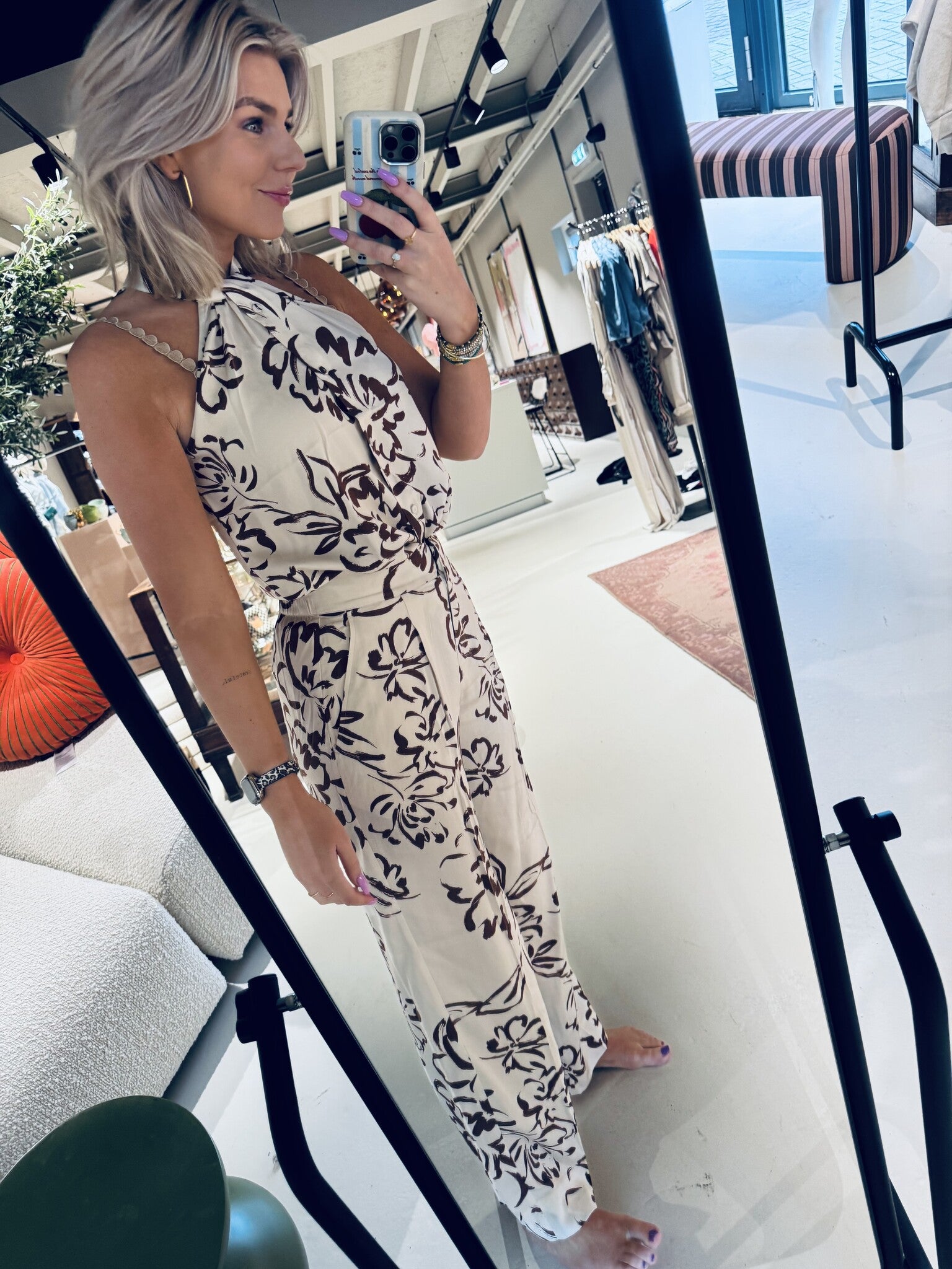 Second Female broek met grafische print. De broek is gemaakt van een zachte en gedrapeerde viscosemix. De broek heeft een blinde rits-, haak- en knoopsluiting aan de voorkant en elastiek aan de achterkant. Twee schuine zakken aan de voorkant en twee sierzakken aan de achterkant. Midden in de taille met losse pasvorm en rechte, vloeiende pijpen.