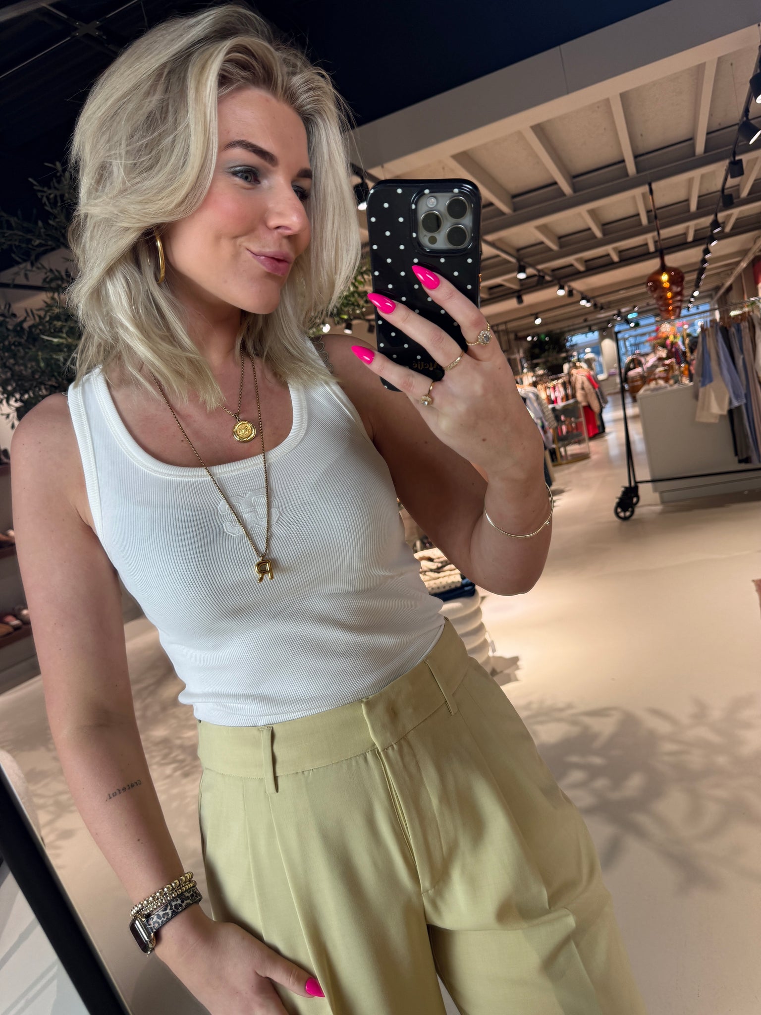 Rixt draagt maat S en is 1.77 cm