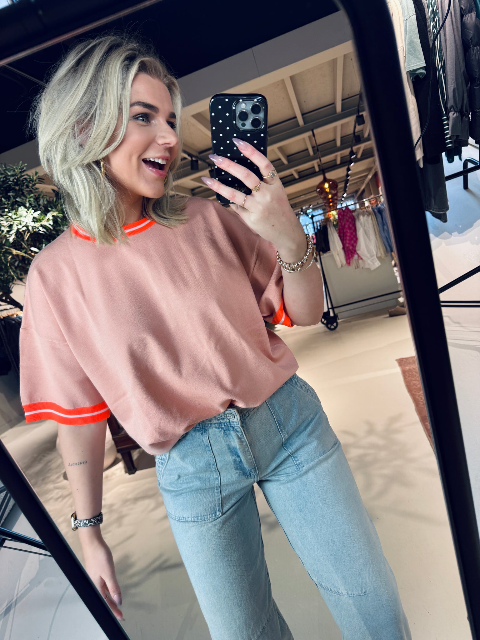 Rixt draagt maat S en is 1.77 cm