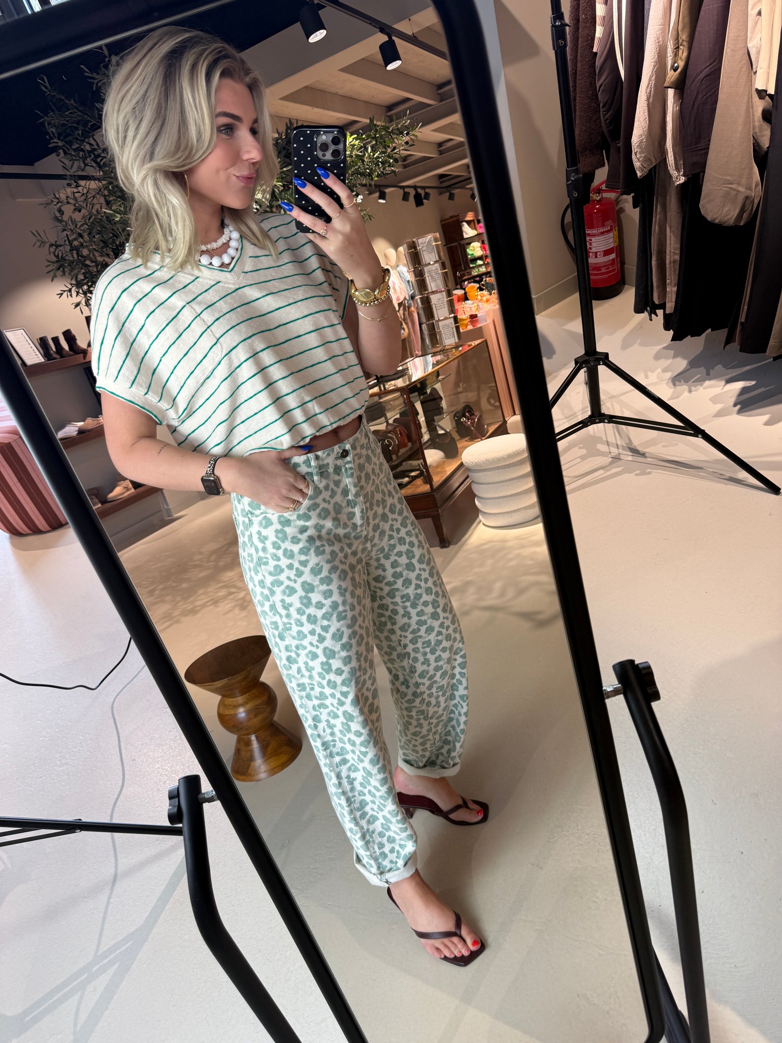 Lew green cheetah pants
