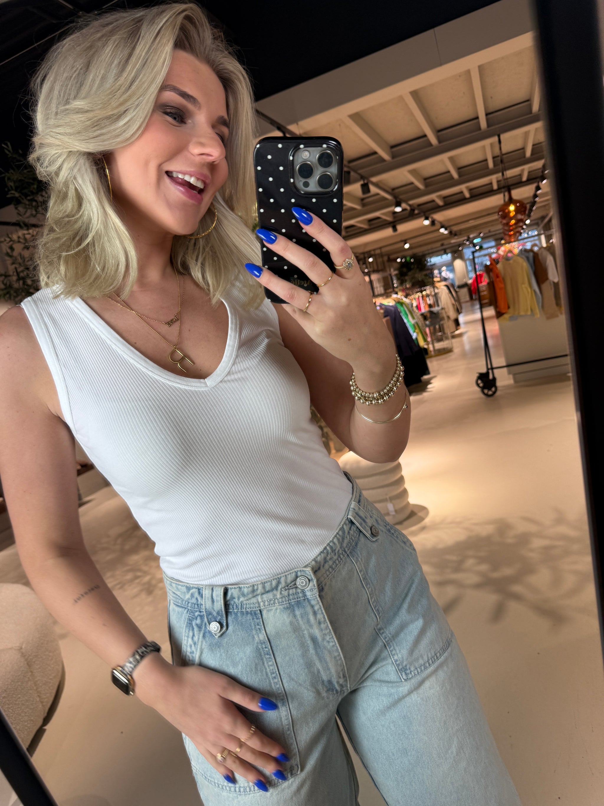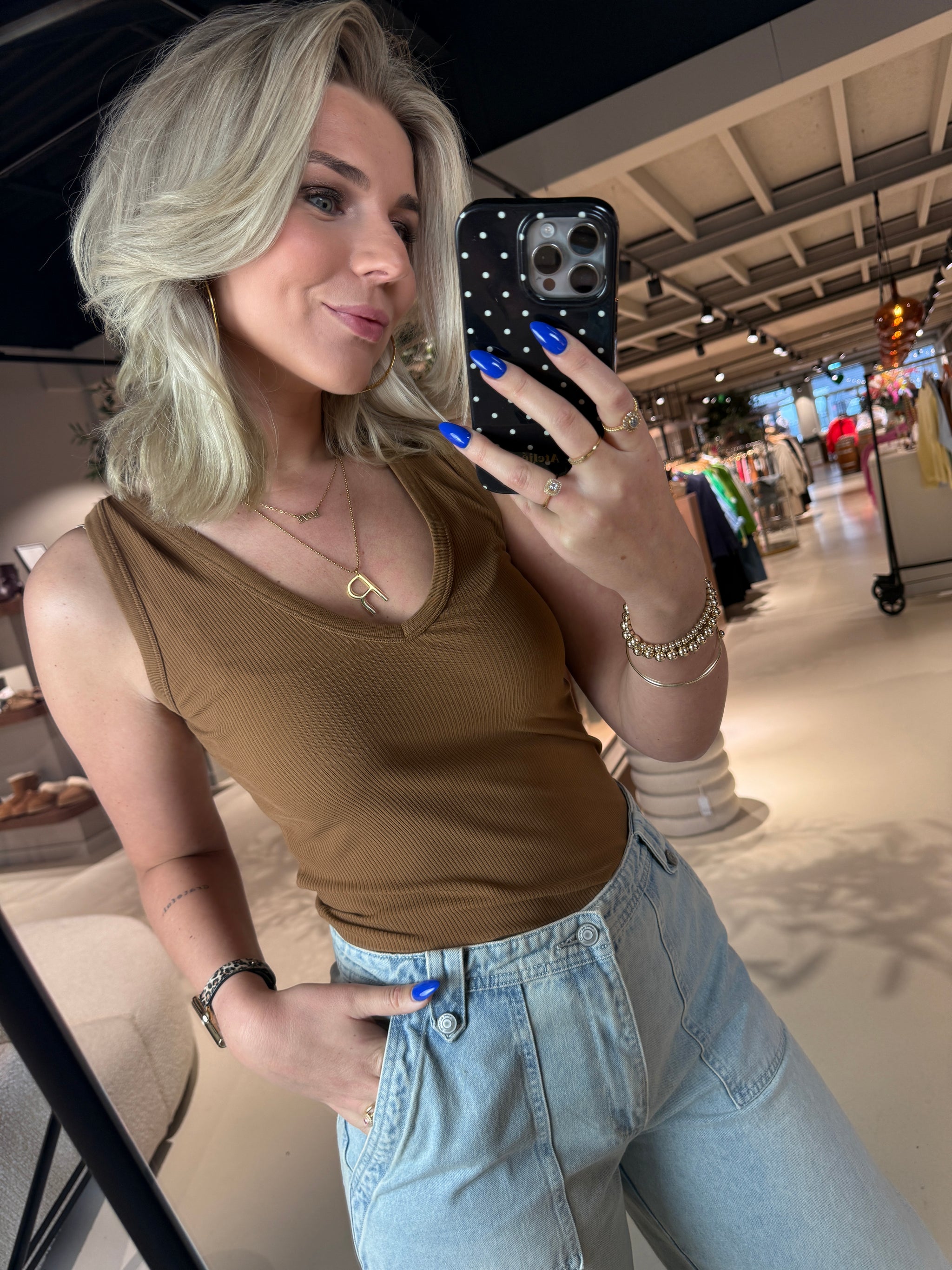 Deze eenvoudige top geeft elke dagelijkse outfit een elegante touch. Het ontwerp met flatterende V-halslijn, geribbelde textuur en getailleerd silhouet zorgt voor een verfijnde look die gemakkelijk te stylen is. Combineer hem met een getailleerde broek voor een tijdloze, klassieke zomeroutfit.