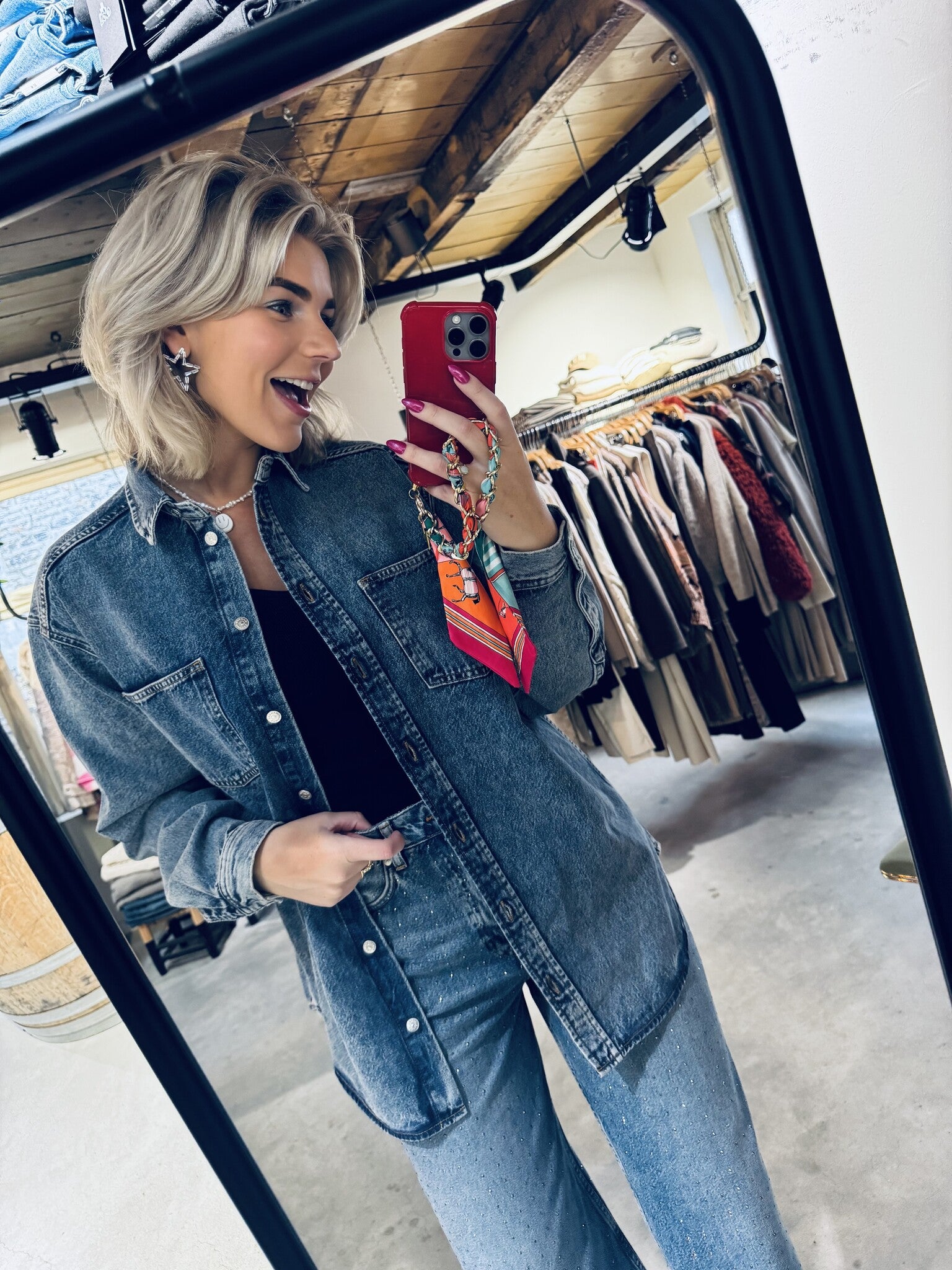 Rixt draagt maat S en is 177 cm.