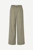 Broek met een losse pasvorm en wijde pijpen. Knoop- en ritssluiting aan de voorkant en elastische tailleband aan de achterkant. Zijzakken met split aan de voorkant.